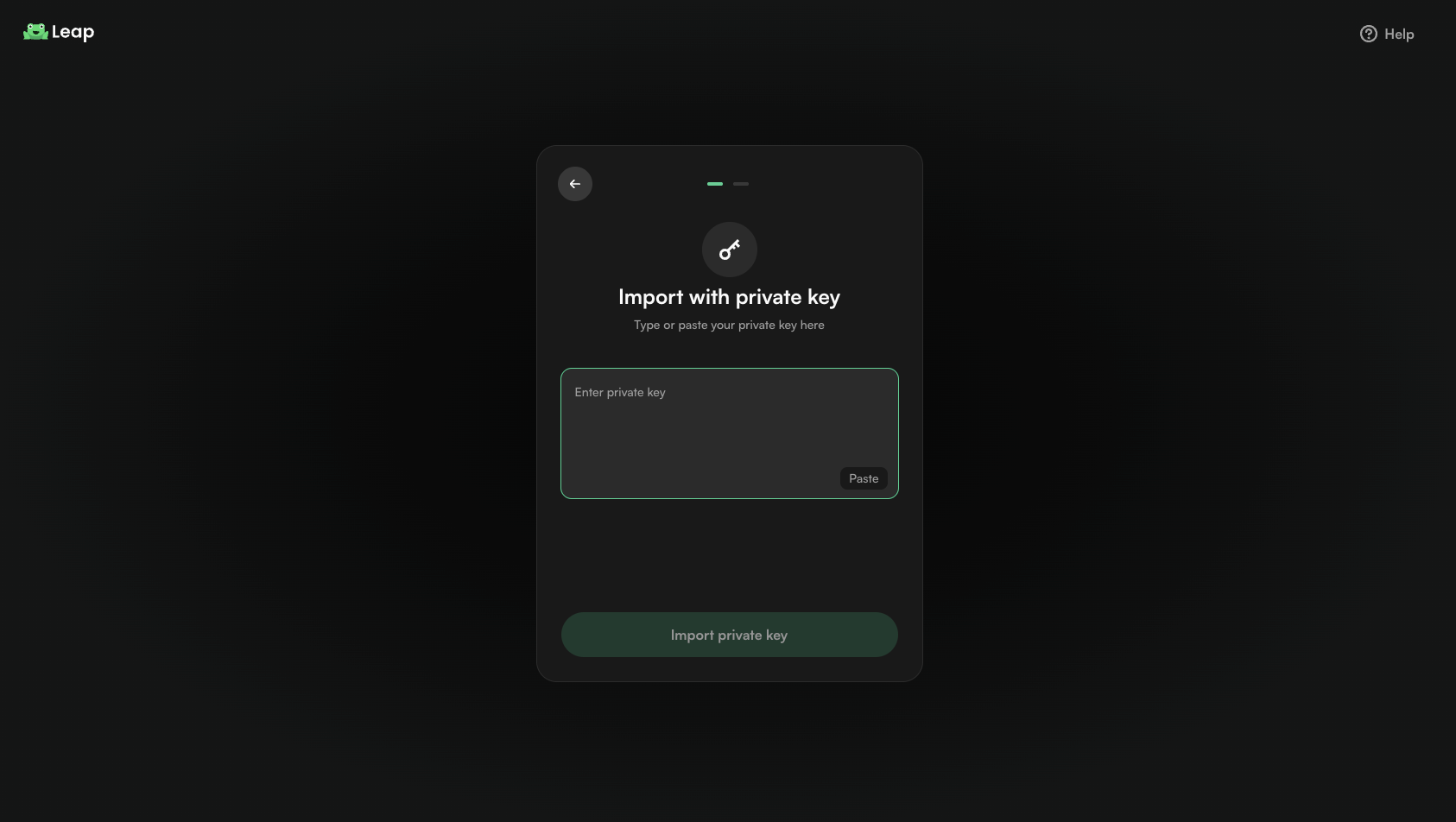 2.6. Paste your private key that was created via CLI in this step. Do not import your recovery (mnemonic/seed) phrase, as the bridge requires direct access to the raw private key to sign transactions and ensure proper interoperability with Ethereum.