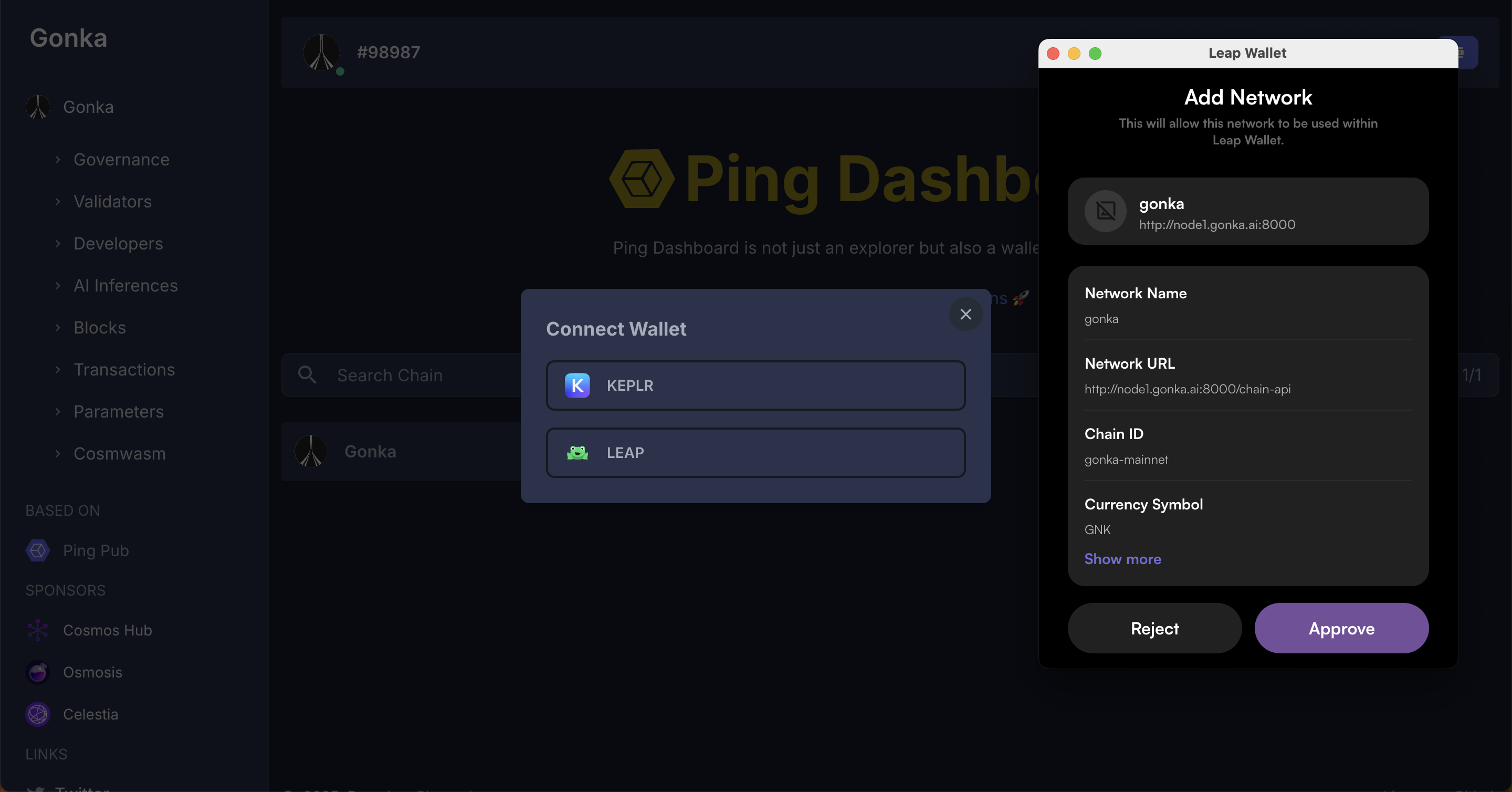 3.4. You will see a prompt to add a custom Gonka chain to your wallet. Approve and add Gonka chain.